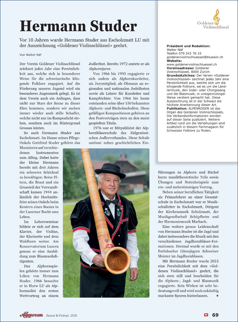 Alpenrosen ist das Organ des Goldenen Violinschlüssels. Die Verbandsinformationen